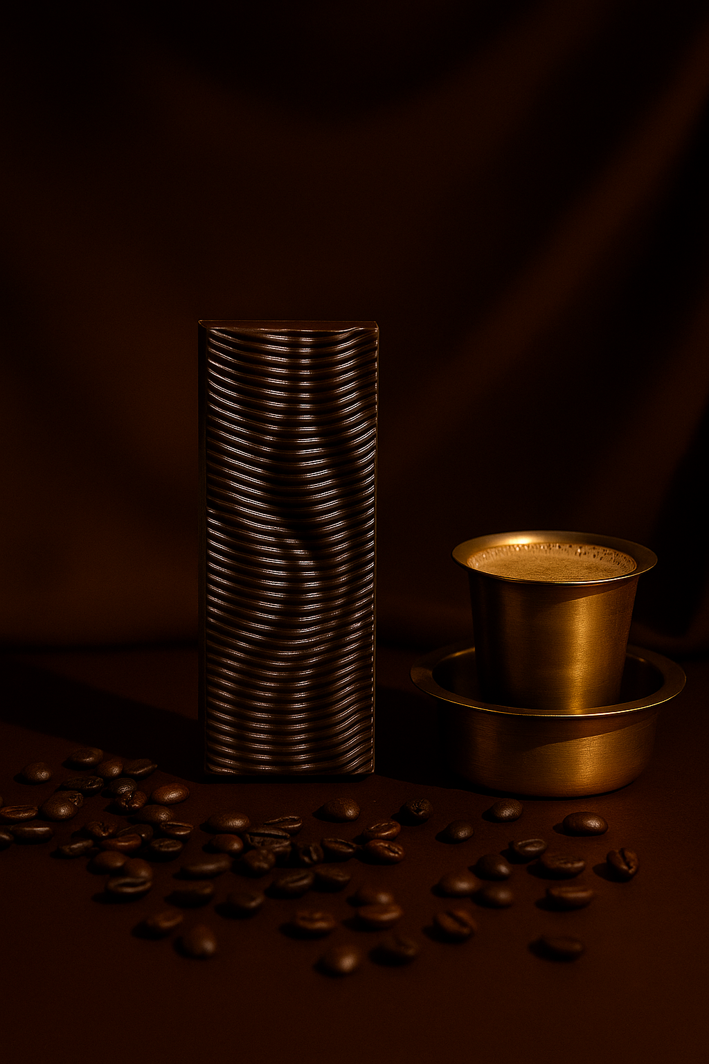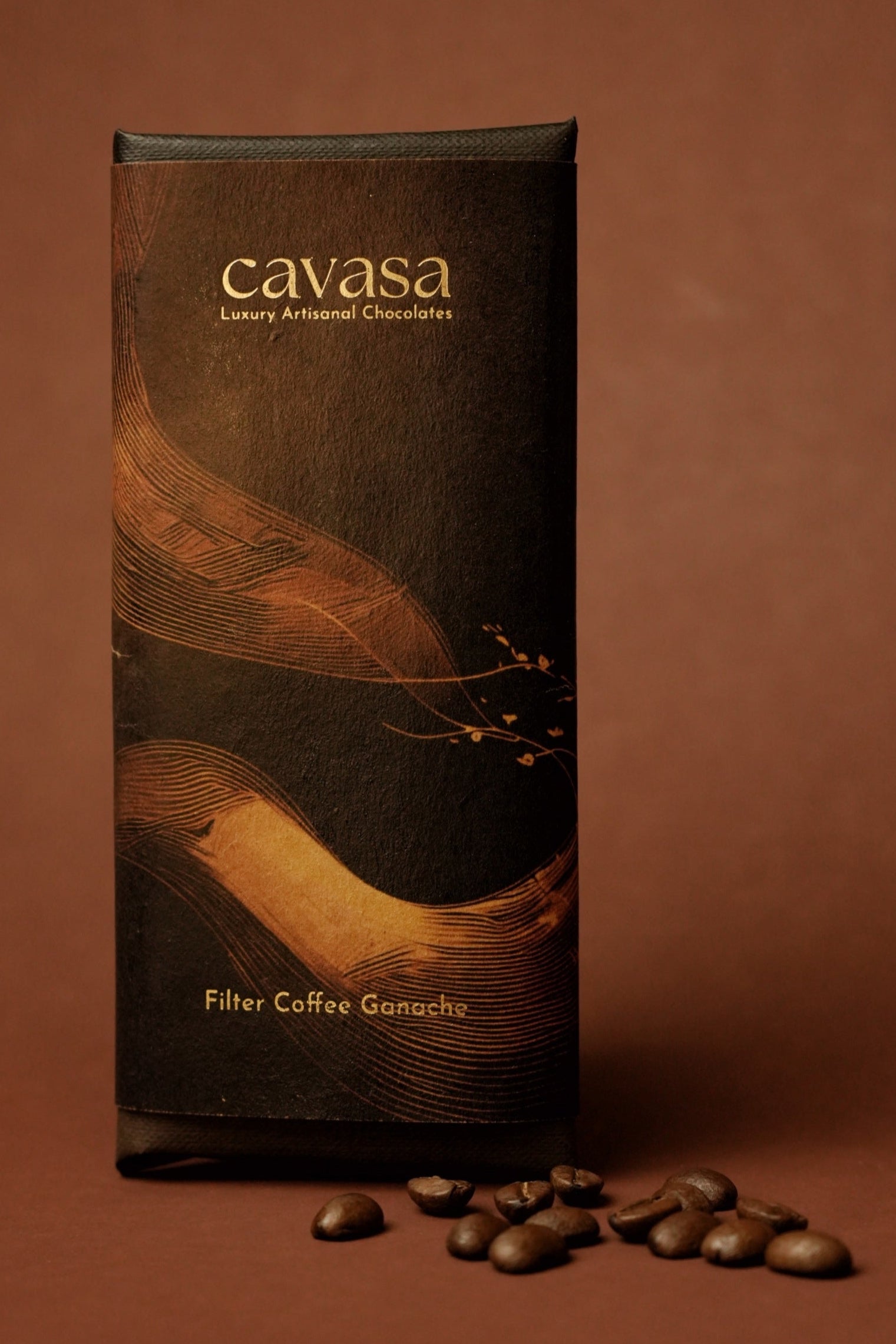 A tribute to India's beloved filter coffee, elevated through chocolate craftsmanship. Our Filter Coffee Ganache Premium Bar envelops an intensely aromatic coffee-infused ganache within smooth milk chocolate walls.