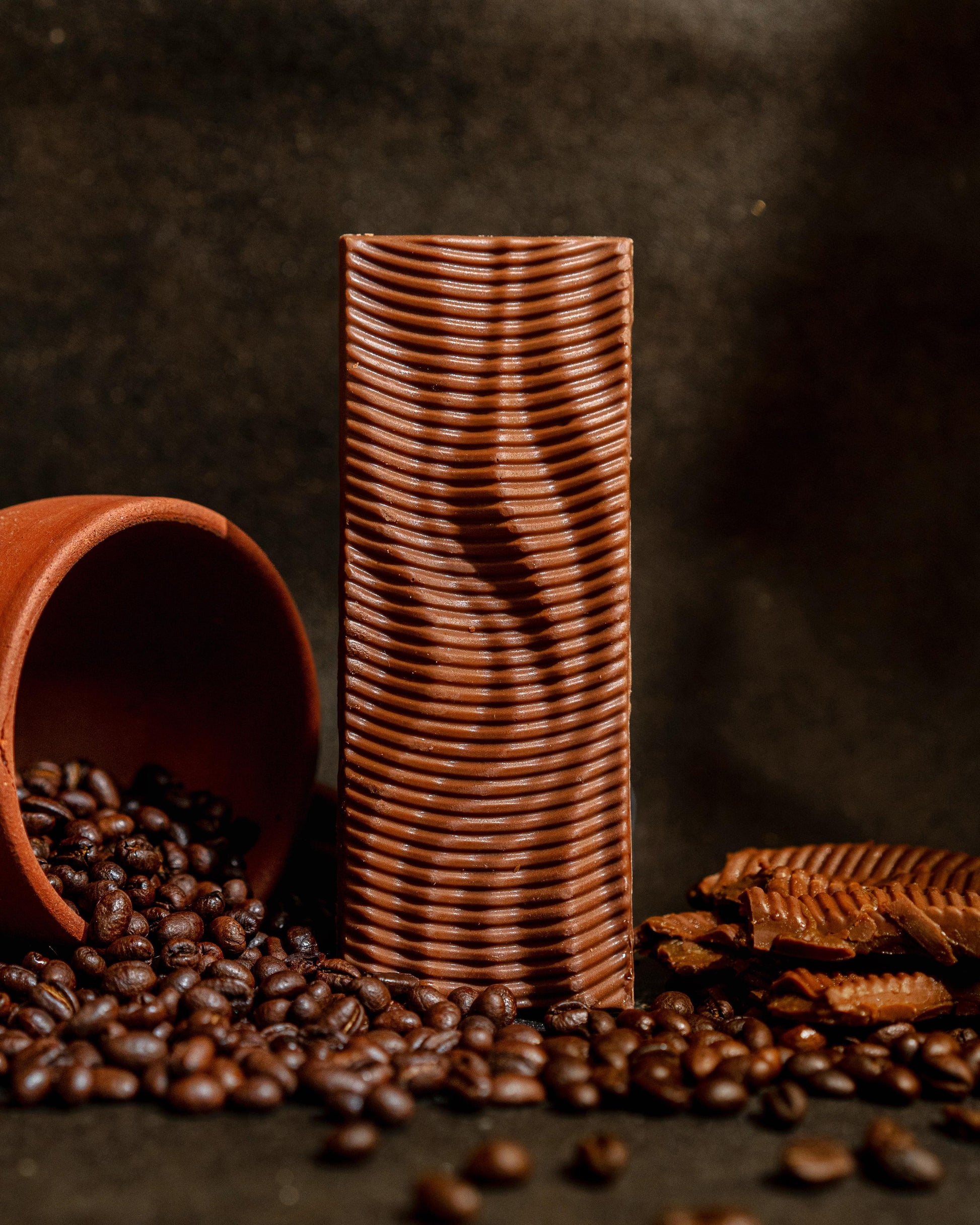 The generous proportions of this bar allow the robust, freshly-brewed coffee notes to develop fully, creating a sophisticated interplay between the bitter complexity of coffee and the deep cocoa notes of our signature milk chocolate. A perfect companion for thoughtful moments.